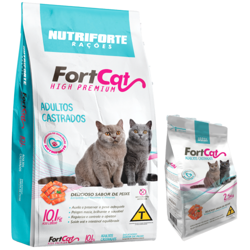 FORTCAT Adultos Castrados é um alimento PREMIUM, balanceado criteriosamente por