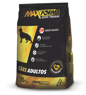 MAXFORMA é um alimento SUPER PREMIUM especialmente desenvolvido para atender todas as necessidades de cães adultos, formulada com ingredientes nobres e rigorosamente selecionados, proporcionando para o seu companheiro: saúde, vitalidade e um sabor irresistível.