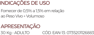- Zinco Orgânico (mínimo) 0,03 g/kg